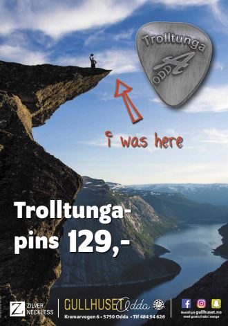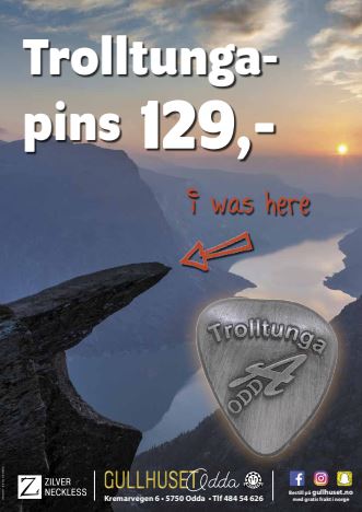Trolltunga pins i tinn designa av May Helen Bleie – Zilver Neckless.